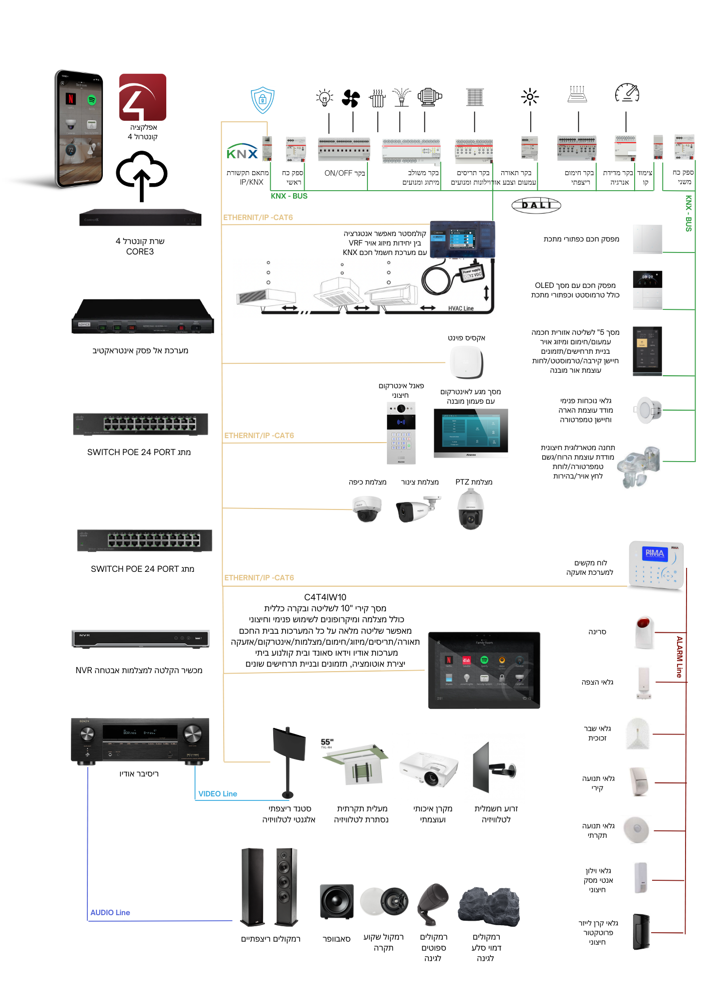 שילוב מערכות אבטחה, מצלמות, אינטרקום, אזעקות, רשתות תקשורת, UPS לגיבוי תקשורת מתקדם.